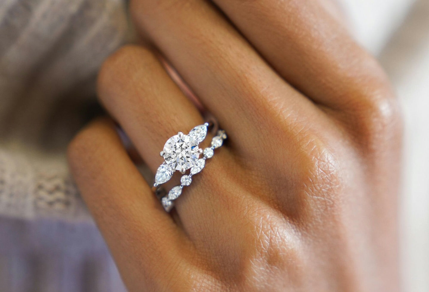 While your center diamond and side stone diamonds don't need to match exactly, it's important to remember that they can affect one another. For example, if your center stone is a warmer J-color and your side stones are an icy D-color, your center stone may appear to have more of an intense tint than it does in contrast with the more colorless side stones. The opposite is also true: if you have a colorless E-color center stone and G-color accent stones, your center stone may appear even more icy white.