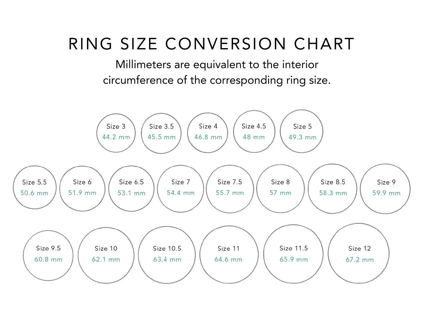 All of our rings are crafted in standard Indian sizes. View the chart below to see how Indian sizes map to finger circumference and convert to international sizes. Engagement rings, wedding bands, and fashion rings all follow the same size format.