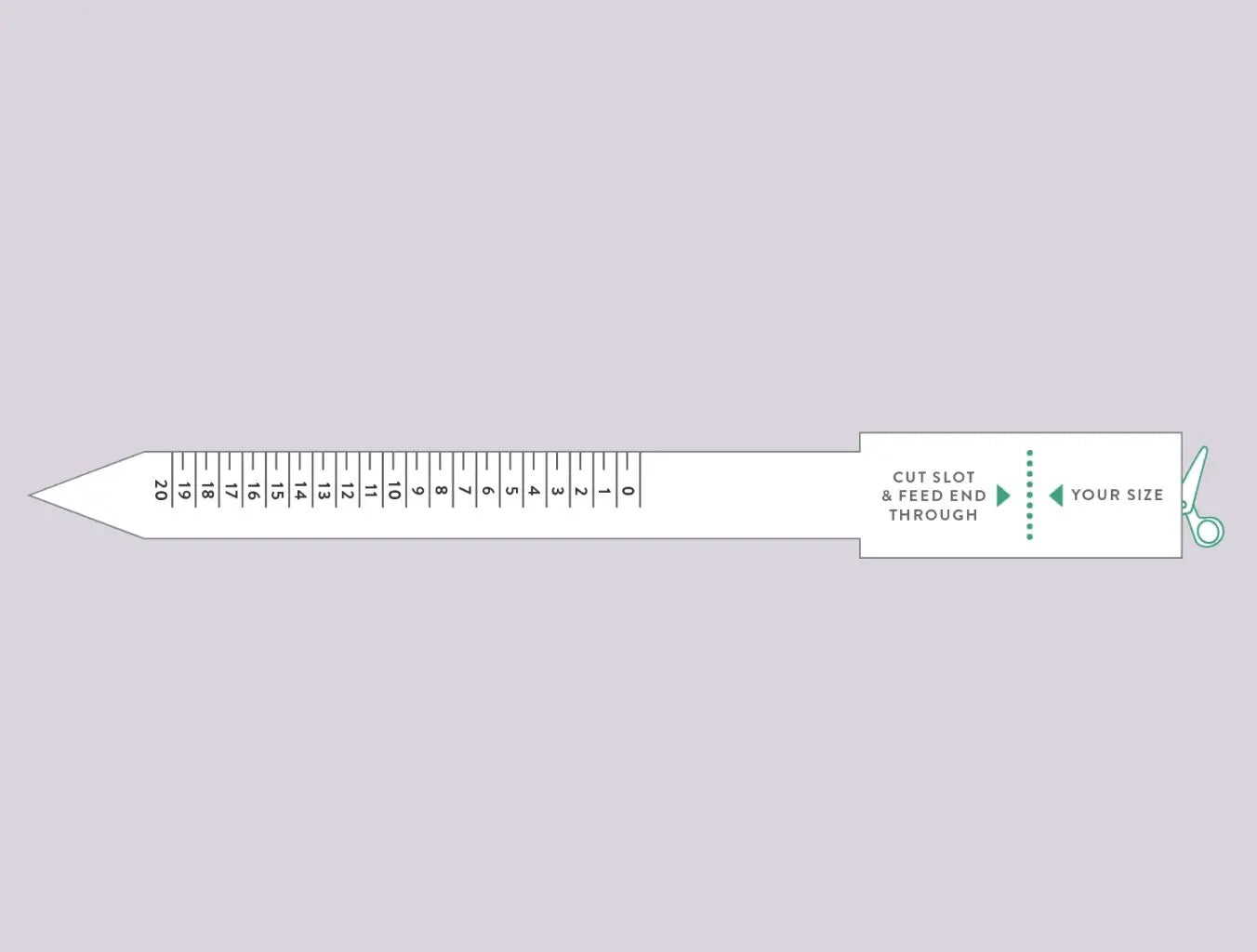 All you have to do is wrap our sizer around the finger you'd like to measure and adjust it to the size that feels right. The perfect size will be snug enough not to slip off but loose enough to slide over the knuckle without too much resistance.