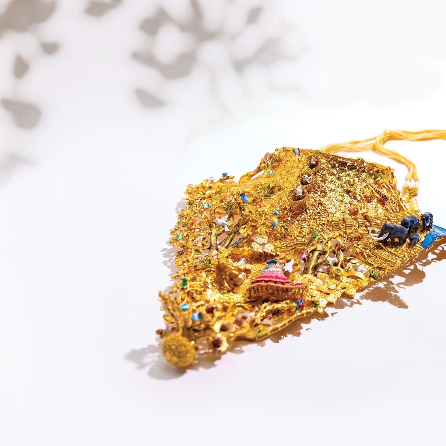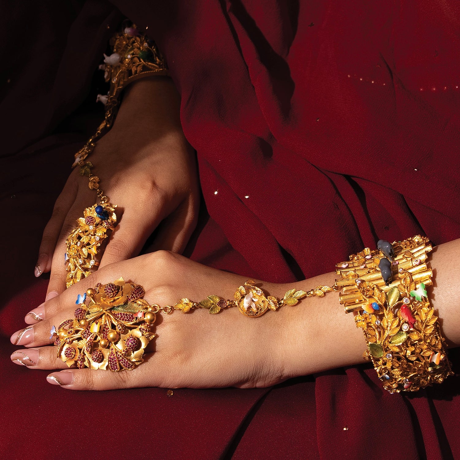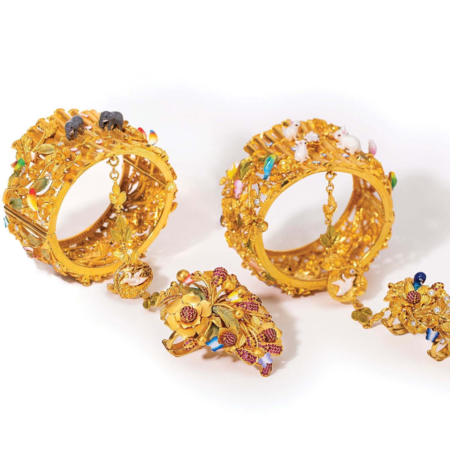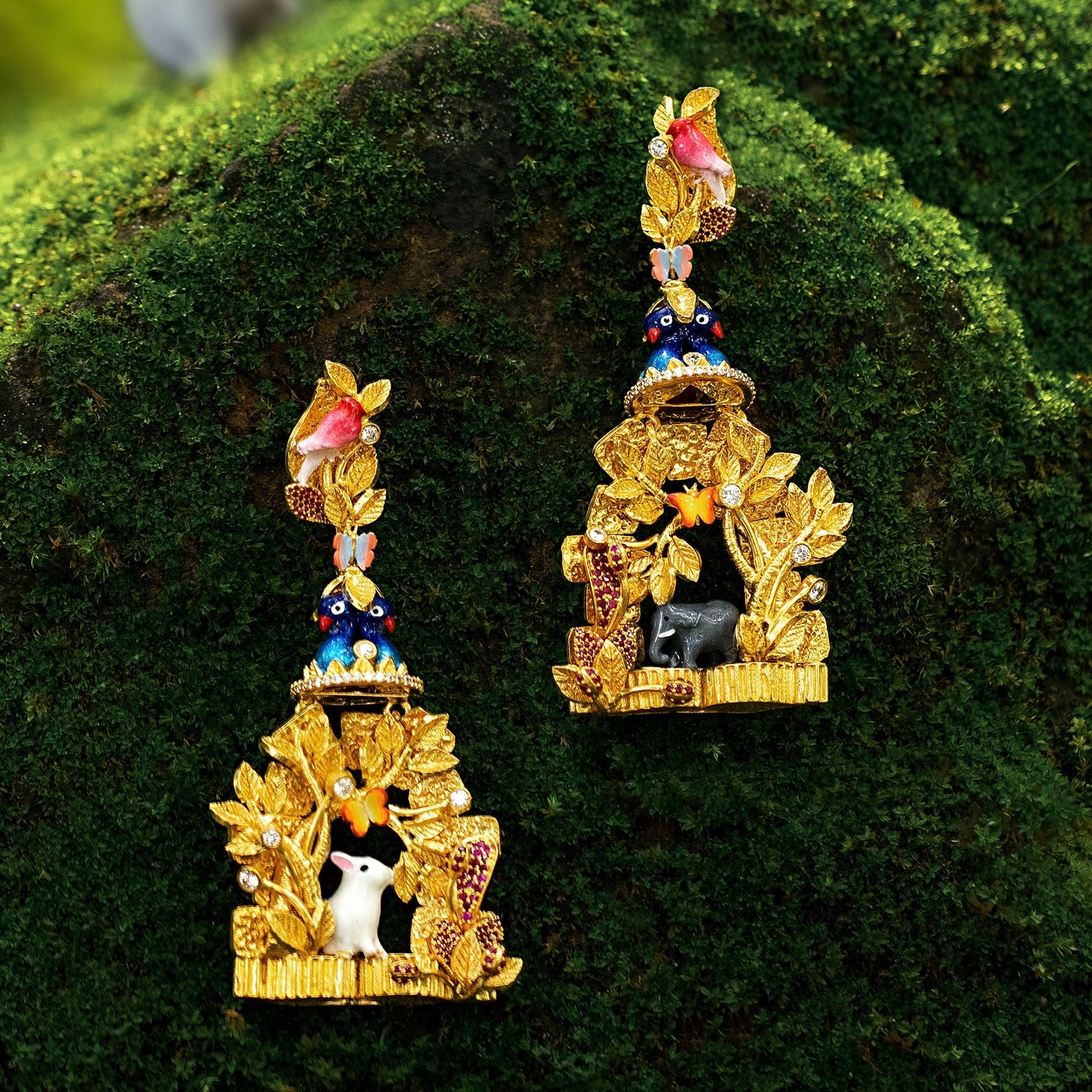 And of-course, it was the mastery of craftsmanship and art from the Maison, which could recreate the magical charm of the Dame Nature with all her resplendent grandeur. Executing the original thought into sketches and then to the actual masterpiece, it did take more than a year of meticulous trials and tribulations including around 9,700 hours of 27 highly skilled individuals to reach this level of impractical technical artistry. Gold was handcrafted individually into ore than 4000 forms, and then each gold piece was soldered together at the joinery to achieve the desired outcome. Weaving together design and technicality, the jewelleries were further embellished with responsibly & carefully sourced Finest Natural Diamonds, African Rubies and Golden South Sea Pears from Indonesia, and arranged in beautiful settings; accentuated with highest level of enamel art.